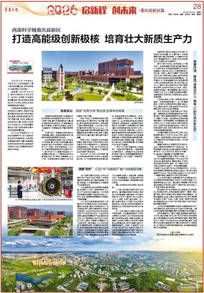 为建设具有全国影响力的科技创新核心承载区,西部科学城重庆高新区紧盯党中央和市委的相关部署,持续做深做透“高”和“新”两篇文章,加快打造重庆科技创新的主引擎、培育壮大新质生产力的排头兵、未来高质量发展的动力源,在服务国家战略中实现自身高质量发展。