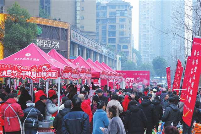 在梁平区屏锦镇,由屏锦镇人民政府主办、重庆农商行梁平支行承办的梁平区首届“渝快荟消费节”新春年货巡展,也于日前在万众期待中火热举行。“这次参加这个活动,给我带来了很多客流量,生意也比平时好几倍!”活动现场,商户张小琴介绍。接下来,梁平支行将持续联动全区2万多户合作商户,覆盖老百姓日常的“吃住行、游购娱、医学养”九大领域,并通过发放消费积分与消费金、举办各类主题促销活动、打造特色夜市街区等丰富多样的形式,把持续的消费盛宴送到梁平区各个乡镇街道。