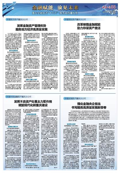 发挥金融资产管理优势 服务地方经济高质量发展改革破题金融赋能 助力存量资产盘活发挥不良资产处置主力军作用 赋能现代化新重庆建设强化金融央企担当 书写服务高质量发展新答卷