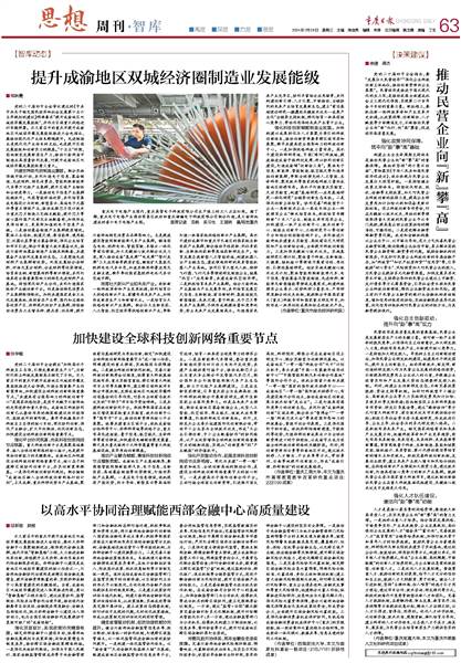 提升成渝地区双城经济圈制造业发展能级推动民营企业向“新”攀“高”加快建设全球科技创新网络重要节点以高水平协同治理赋能西部金融中心高质量建设