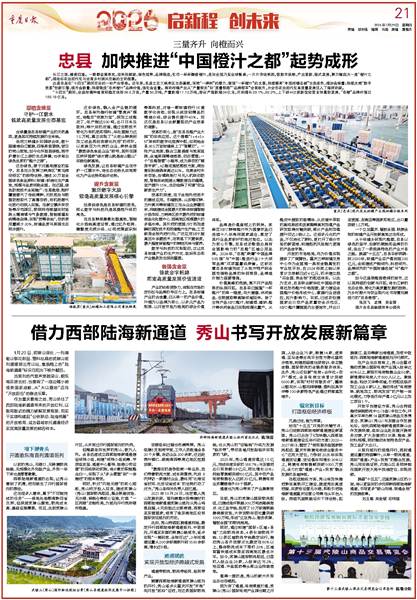 这是忠县在“十四五”期间交出的一份产业答卷。近年来,忠县立足三峡库区生态禀赋,深挖“一棵树”的潜力,做强“一杯橙汁”的文章,持续擦亮“中国柑橘名城”生态底色,增加含绿量;持续点燃“数字变革”创新引擎,提升含新量;持续锻造“忠州橙汁”品牌价值,强化含金量。推动柑橘产业从“产量领先”向“质量领跑”“品牌领军”全面跃升,为全市农业现代化高质量发展注入了澎湃动能。