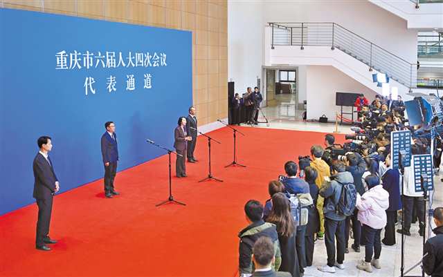 1月29日,市人民大厦,市六届人大四次会议“代表通道”集体采访现场。记者 齐岚森 摄/视觉重庆 |