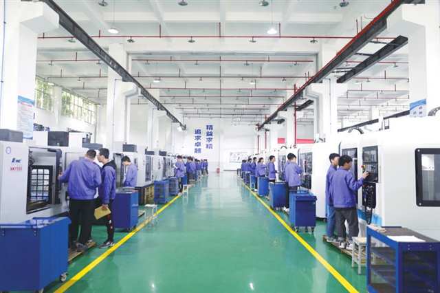 重庆工商学校数控技术专业学生在市级智能制造产教融合基地实训操作 |