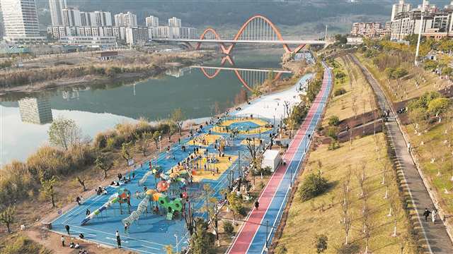 聚焦群众急难愁盼,开州区多部门协同推进丰泰片区整治工作,坚持因地制宜、顺势而为,在该片区增设亲水平台和观景座椅,搭配种植垂柳、三角梅等乡土植物,建成篮球场3个、羽毛球场6个、门球场1个、网球场1个、儿童游乐场1个,配套安装乒乓球台16张、智能健身器械25套,集运动健身、休闲娱乐、环境美化、自然生态、应急避险等于一体,惠及周边群众10万余人,成为了展现开州之美的“城市名片”“幸福空间”。