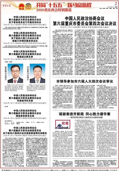 征程万里风正劲,重任在肩再奋蹄。让我们更加紧密地团结在以习近平同志为核心的中共中央周围,在中共重庆市委坚强领导下,努力在“十五五”开局之年展现政协担当、贡献政协智慧,为奋力谱写中国式现代化重庆篇章作出新的更大贡献!