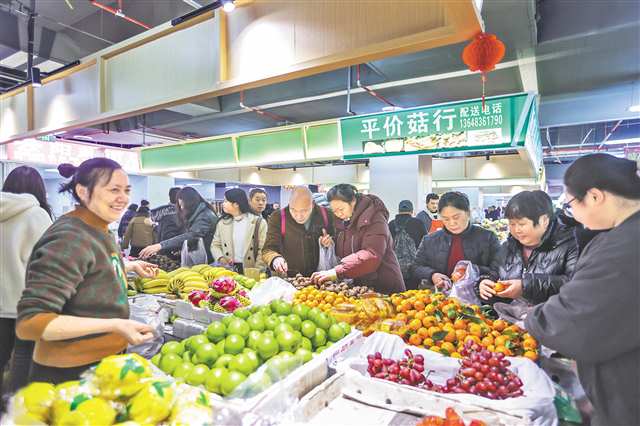 家住附近小区的张婆婆提着购物袋,一边挑选一边念叨:“以前买菜要多走两三条街,现在出小区步行3分钟就到,方便多了。”说着,她拿起一把绿油油的菠菜,凑到鼻子前闻了闻,“你看嘛,这菜确实新鲜哟,价钱还实惠。”