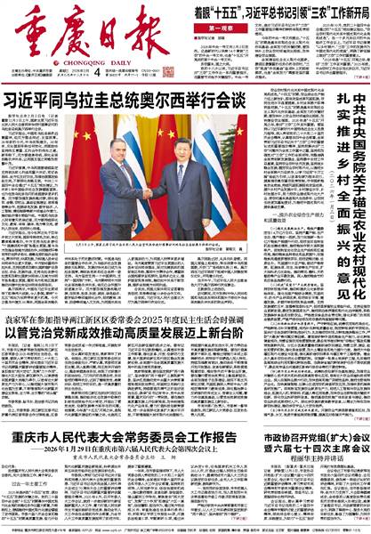 习近平强调,中乌两国要继续坚定支持彼此核心利益和重大关切,密切各层级、全方位友好交往,加强治国理政经验交流,不断深化战略互信。中共二十届四中全会通过“十五五”规划建议,为未来5年中国经济社会发展擘画蓝图,也为包括乌拉圭在内的各国提供更多机遇。双方要加强发展战略对接,深化经贸、金融、农牧业、基础设施建设、信息通信等合作,挖掘绿色发展、数字经济、人工智能、清洁能源等新兴领域合作潜力,推动经济增长转型升级。中国和乌拉圭人民有着天然亲近感,双方要持续深化文化、教育、体育、媒体、地方等交流,便利人员往来,促进民心相通。
