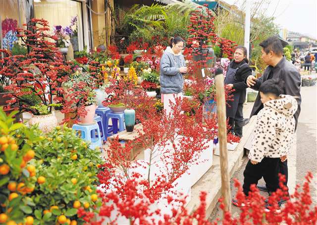 2月2日,两江新区望海花市,市民正在选购五彩缤纷、花香扑鼻的年宵花。