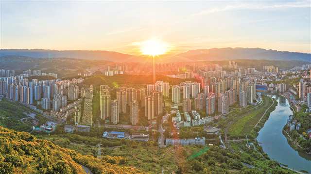 晨曦漫綦江,山峦高楼错落相依 |