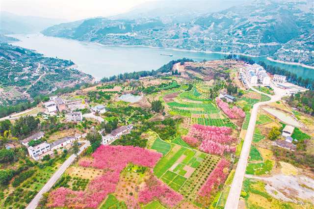 曲尺乡月明村位于长江南岸,是三峡库区移民村。近年来,月明村将生态建设与产业发展相结合,如今村里不仅有柑橘和巫山脆李等产业发展带来的四季果香,也有梅花、油菜花、果花等农文旅产业融合发展的四季花香,呈现出生态美、产业兴、百姓富的美好图景。
