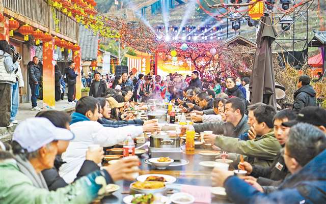 二月五日,石柱县桥头镇瓦屋村,“一起来桥头过年”活动现场,乡亲们齐聚一堂吃团年饭。记者 齐岚森 摄\视觉重庆 |