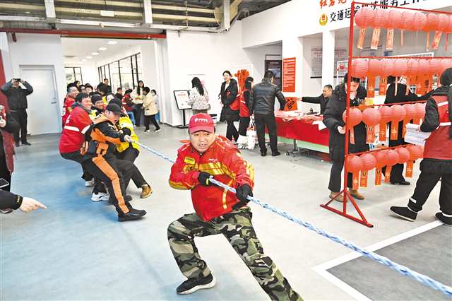 2月5日,九龙坡区红心蚂蚁登途驿站,新就业群体代表参加拔河、猜灯谜等新春游园活动。记者 郑宇 摄/视觉重庆 |