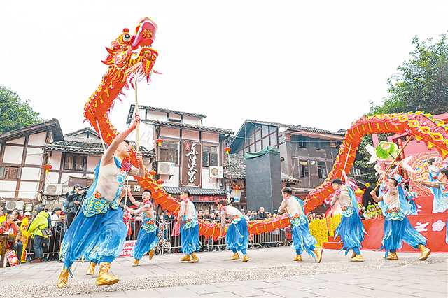 2月10日,綦江区东溪镇庙坝子广场,民俗表演《龙腾鱼跃舞华章》。 通讯员 陈星宇 摄/视觉重庆 |