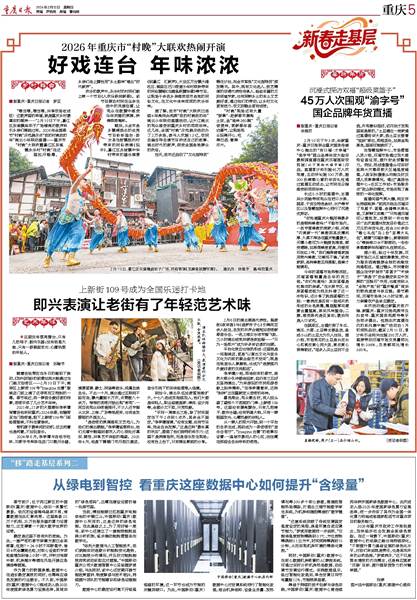 “啷当啷,啷当啷,共享农场收成旺!这歌声里的幸福,就是重庆乡村最真实的模样……”2月10日下午,綦江区东溪镇庙坝子广场嘹亮的歌声吸引乡亲们围拢过来。2026年全国春节“村晚”示范展示点“我的村晚我的年”南北小年联动直播——重庆市“村晚”大联欢暨綦江区东溪镇永乐村“村晚”在这里拉开帷幕,乡亲们走上舞台用“乡土韵味”唱出“时代新声”。