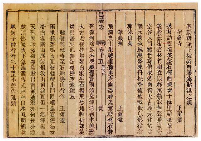 清《巴县志》王尔鉴对华岩寺的相关记载。(九龙坡区档案馆供图) |