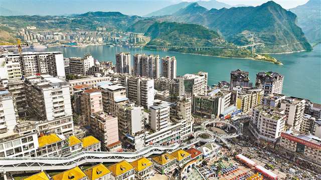 2月12日,巫山神女大扶梯启动测试运行。(无人机照片)