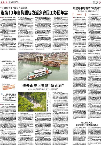 “屏上显示的是高空高清摄像头拍摄的缙云山香炉峰画面,这个摄像头可实现24小时、360度全域巡航监测。”缙云山防火办负责人陈光辉说,眼下正是森林防火期,“智慧林长”森林防火预警监测平台上线后,可实时监测火情,实现森林火情早知道、早预警、早扑灭。