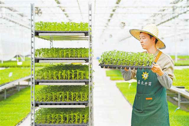 据介绍,该种苗工厂采用人工智能育苗技术,实现了从基质处理、高速播种到环境调控等方面的全流程自动化,年产优质种苗1.5亿株。
