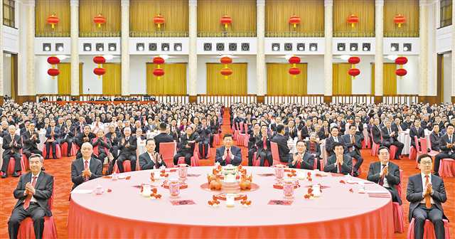 2月14日,中共中央、国务院在北京人民大会堂举行2026年春节团拜会。党和国家领导人习近平、李强、赵乐际、王沪宁、蔡奇、丁薛祥、李希、韩正等同首都各界人士欢聚一堂、共迎佳节。新华社记者 谢环驰 摄 |