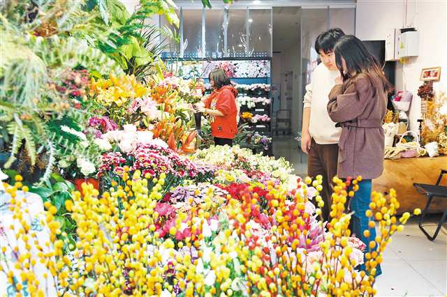 2月14日,巴南区龙洲湾街道一花店,市民在选购鲜花。春节临近,鲜花销量激增。特约摄影 李攀/视觉重庆