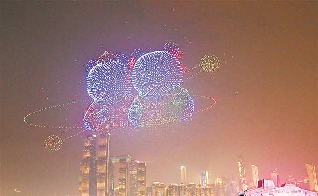 无人机灯光秀展现憨态可掬的熊猫图案。记者 谢智强 摄/视觉重庆 |