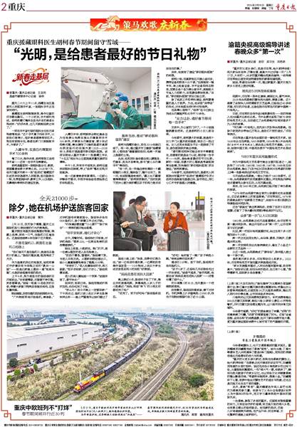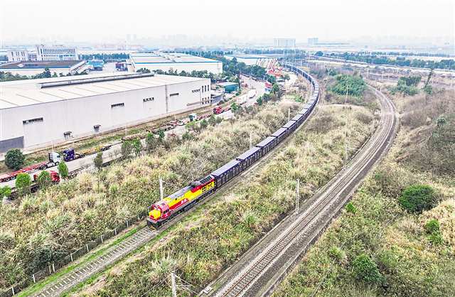 2月17日,重庆中欧班列农历新年首班列车从沙坪坝团结村站开出(无人机照片),驶向德国杜伊斯堡。