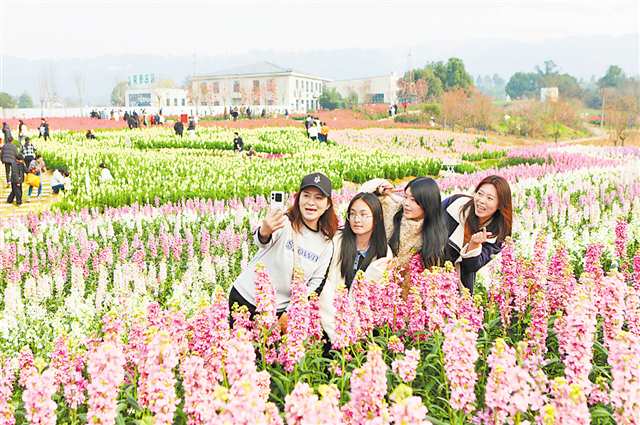 2月17日,永川区十里荷香农业园区,游客在花海里嬉戏拍照。特约摄影 陈仕川/视觉重庆