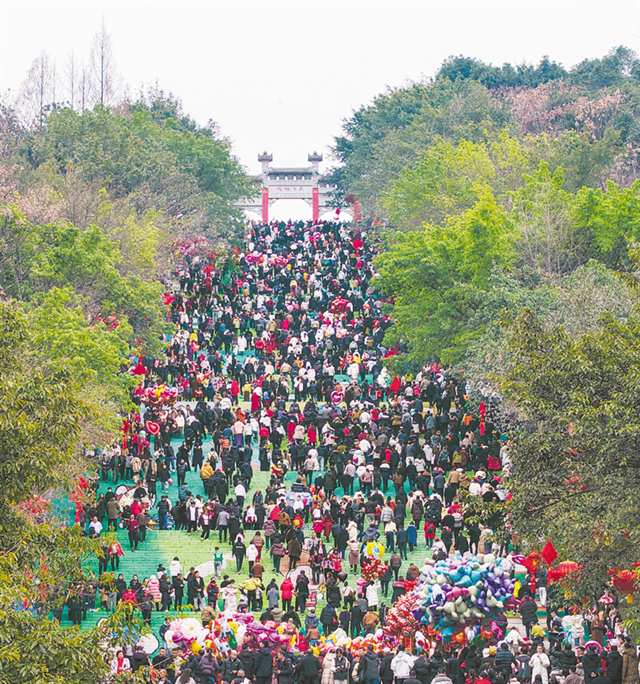 2月17日,云阳县登云梯,10余万市民与游客体验传统登高民俗,欢度马年春节。通讯员 谭启云 摄/视觉重庆
