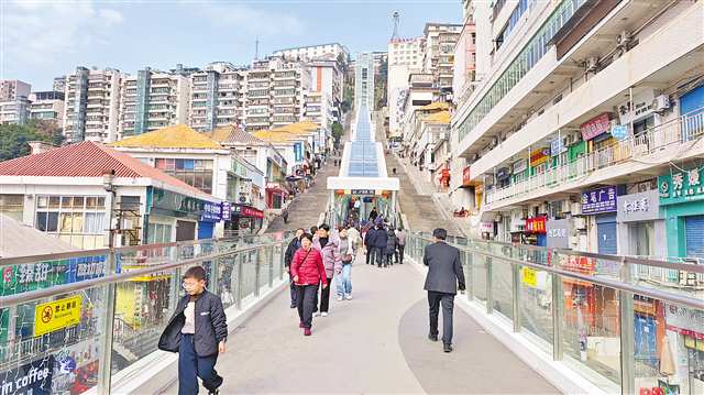 2月18日,巫山县,市民和游客乘坐神女大扶梯观光赏景。