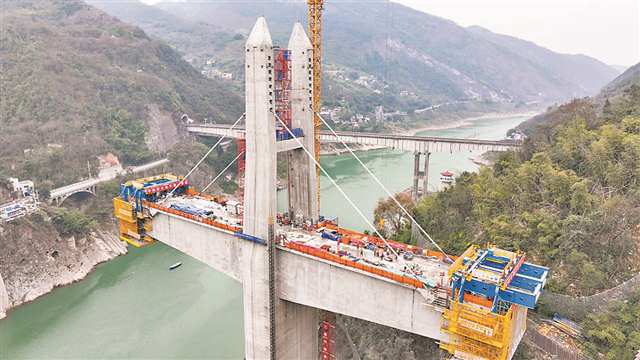 渝东北群山之间,奉建高速控制性工程——大溪河特大桥实现全桥合龙。桥长1662米,主跨650米,拥有312.4米高的钻石型主塔及世界第一大跨度的双边工字形组合梁,成为重庆桥梁史上的又一里程碑。它的合龙,为奉节至建始这条渝鄂省际通道全线贯通奠定坚实基础,将有力促进渝东北与鄂西地区的互联互通,助推长江经济带协同发展。