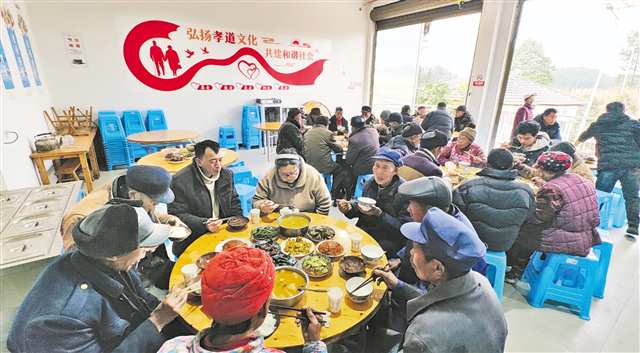 从那天起,全村老人都能吃上免费的“热乎饭”。平时五六桌,农忙、开会、过节有二三十桌。年底外出村民回来,更是上百桌。行动不便的,村干部还送餐上门。