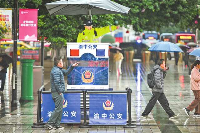 1月2日,解放碑步行街,警察为游客指路。记者 谢智强 摄/视觉重庆 |