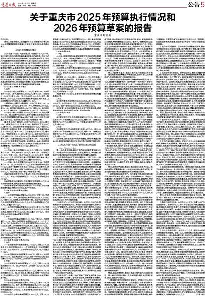 关于重庆市2025年预算执行情况和2026年预算草案的报告