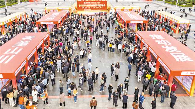 2月25日,南川区,春风行动招聘会火热开场(无人机照片)。