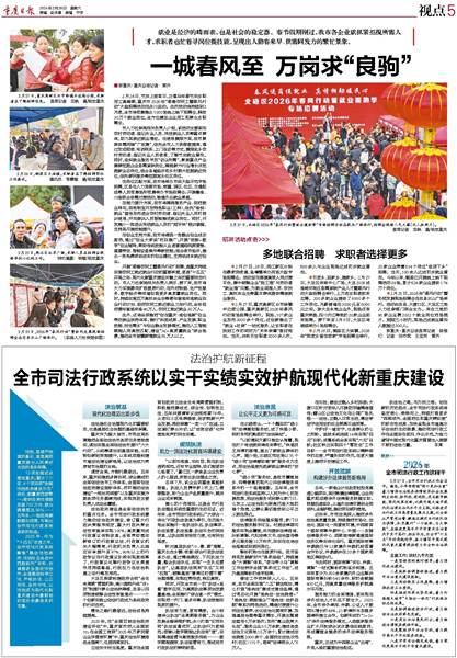 2025年,在“全国百城法治政府建设评估”中,重庆首次进入全国前10;在全国工商联“2025年万家民营企业评营商环境”中,重庆法治环境排名全国第7,位居西部前列。