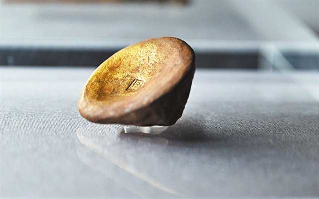 成都荆楚东路墓地出土的金饼。记者 刘力 摄/视觉重庆 |
