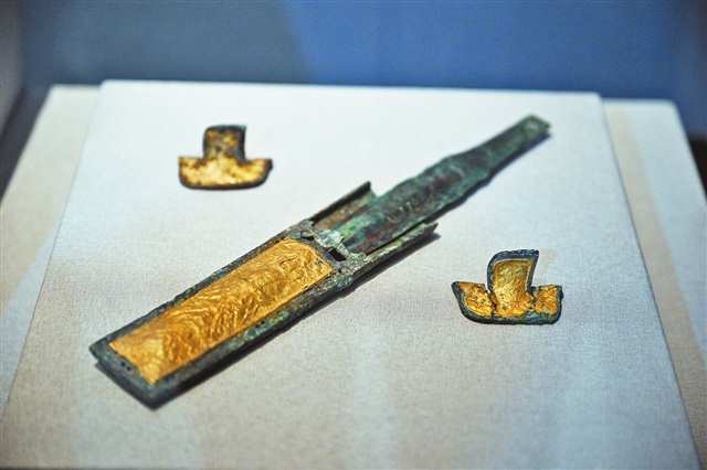 涪陵小田溪遗址出土的战国贴金铜鞘短剑。记者 刘力 摄/视觉重庆 |