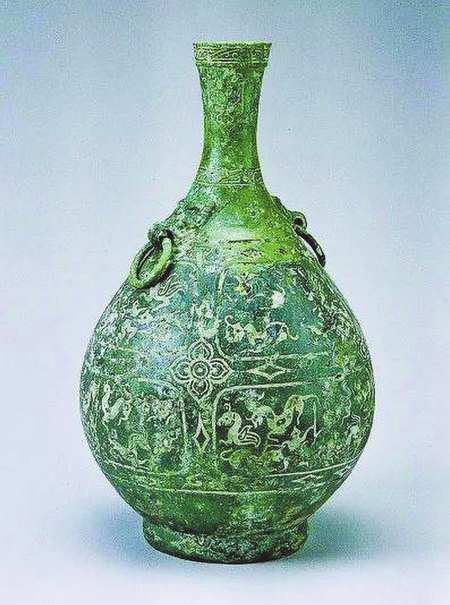 宣汉罗家坝遗址出土的狩猎纹铜壶。(资料图片) |
