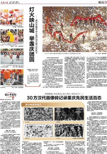 3月3日,《研究》第一作者、重庆市人民政府文史研究馆馆员、重庆市文物考古研究院文博研究馆员林必忠表示,这是重庆地区首次在正式考古发掘中发现汉代画像砖,一次性出土30方,其中15方画面完整,堪称重大突破。这些画像砖上的画面,真实地记录了汉代巴渝先民的生产生活、舞乐百戏和社会交往。