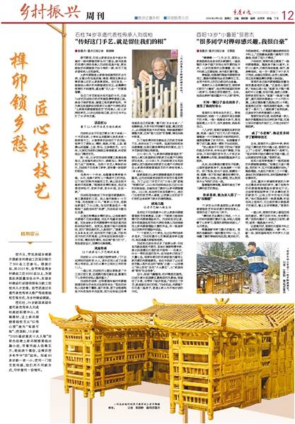 邹君杰从小自学榫卯技艺,被同学们称为“小鲁班”,他还带动班里的同学一起学习,传承这项非遗技艺。去年,他因此荣获“感动重庆十大人物”称号。