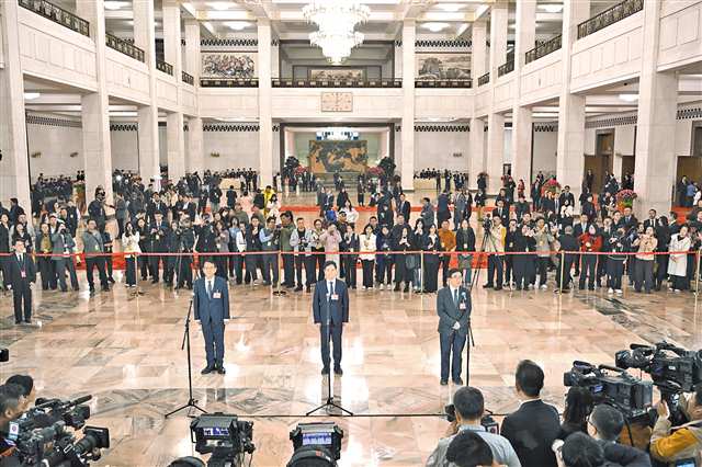 3月4日,全国政协十四届四次会议首场“委员通道”集体采访活动在北京人民大会堂举行。新华社记者 曹祎铭 摄 |