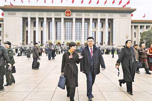 3月4日,全国政协十四届四次会议开幕会后,住渝全国政协委员信心满怀地步出北京人民大会堂,一边走一边交流履职打算。通讯员 秦杰 摄/视觉重庆