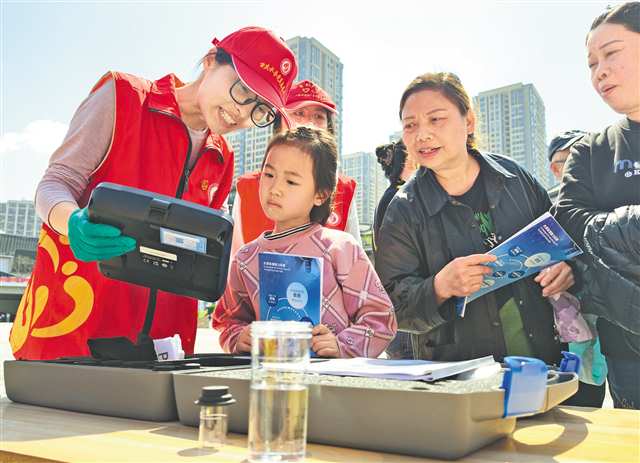 3月4日,巴南区茶花广场,重庆水务集团党员志愿者通过实验向居民普及用水安全知识。记者 崔力 摄/视觉重庆 |