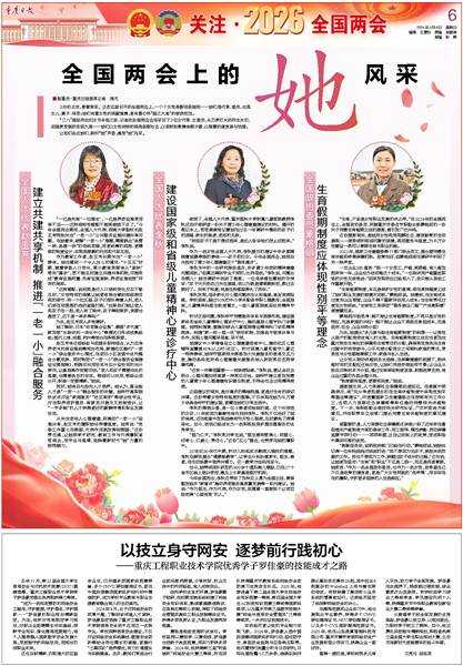 从关注老年人心理健康,到推动“一老一小”设施共享,赵玉芳的履职始终带着温度。她常说:“党委工作重心在哪里,代表作用就发挥到哪里。”这份责任感,让她把学术研究、教育工作与代表履职紧密结合,用专业与温情,诠释着新时代“她”力量的独特魅力。