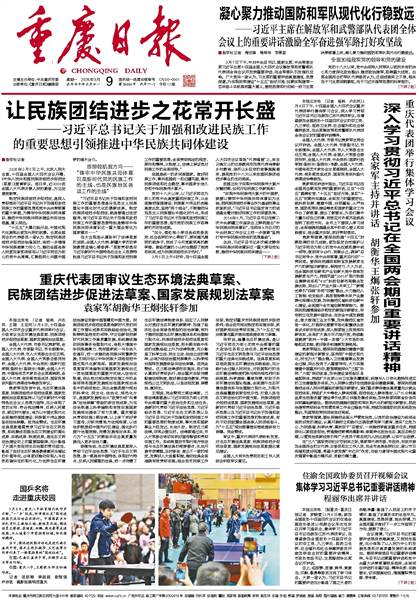 凝心聚力推动国防和军队现代化行稳致远让民族团结进步之花常开长盛深入学习贯彻习近平总书记在全国两会期间重要讲话精神重庆代表团审议生态环境法典草案、民族团结进步促进法草案、国家发展规划法草案集体学习习近平总书记重要讲话精神国乒名将走进重庆校园