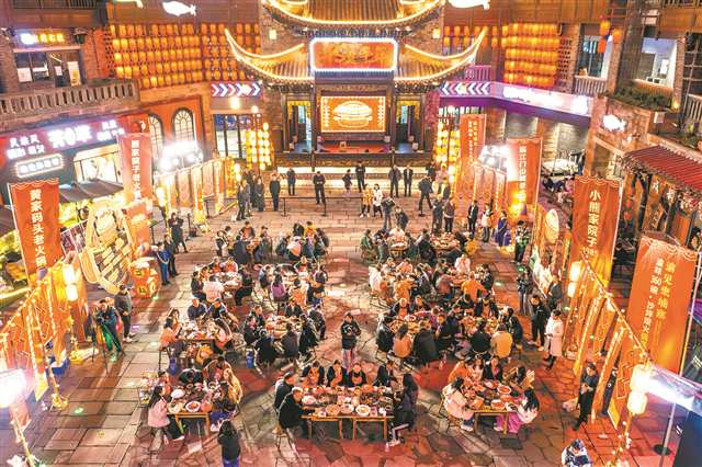 沙坪坝区磁器口古镇,在渝留学生与重庆市民共品火锅盛宴,欣赏非遗表演。通讯员 郭晋 摄/视觉重庆 |
