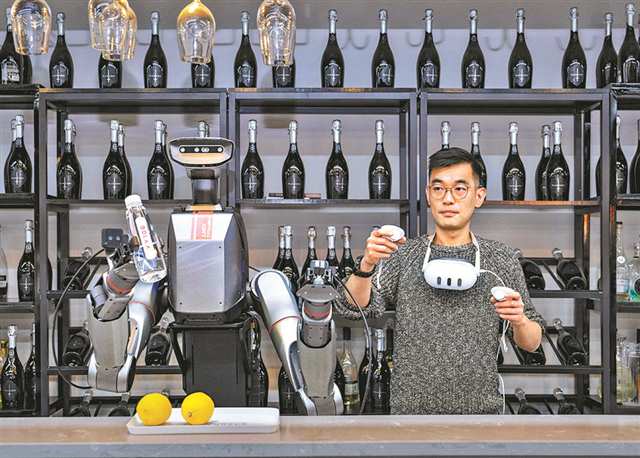 图②:位于两江新区的博拉AI模创空间,具身智能机器人TRON 2跟随训练师的动作同步拿起一瓶矿泉水。(本报资料图片)记者 张锦辉 摄/视觉重庆 |