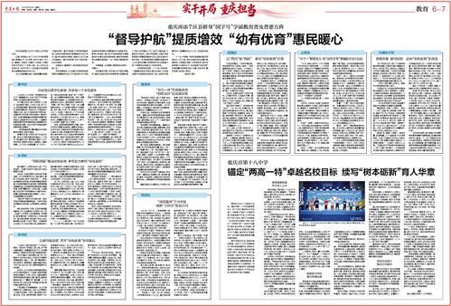 作为重庆母城,渝中区秉持“人文渝中 尚品教育”理念,以先行之姿、实干之为,把牢提质增效、惠民有感、改革求变导向,聚焦保障体系、师资队伍、办园品牌三项重点任务,奋力打造具有渝中辨识度、全国影响力的成果:获评全国幼儿教育先进区、全国完善普惠性学前教育保障机制实验区,典型案例作为全市唯一入选教育部教育督导局《学前教育普及普惠督导评估典型案例集》,在全市率先创建全国学前教育普及普惠区。
