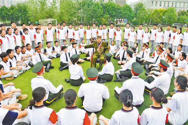 永川中学,孩子们在操场上听老战士讲革命故事。(资料图片)记者 崔力 摄/视觉重庆 |
