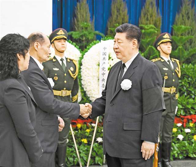 3月10日,宋平同志遗体在北京八宝山革命公墓火化。习近平、李强、赵乐际、王沪宁、蔡奇、丁薛祥、李希、韩正等前往八宝山送别,胡锦涛送花圈表示哀悼。这是习近平与宋平亲属握手,表示深切慰问。新华社记者 谢环驰 摄 |